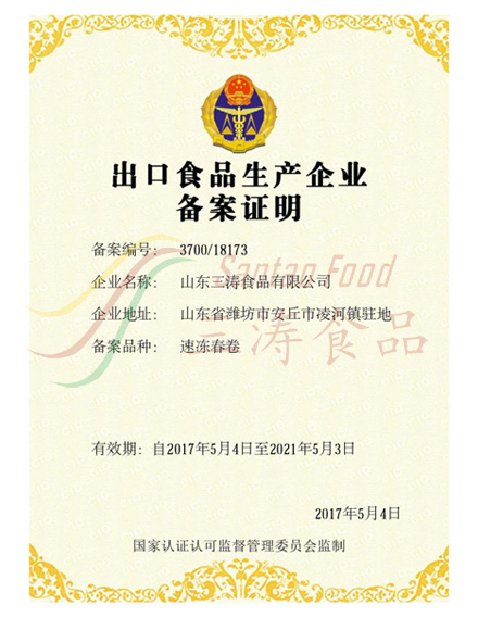 速凍春卷出口備案證明