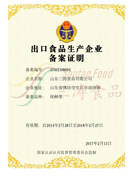 保鮮菜出口備案證明