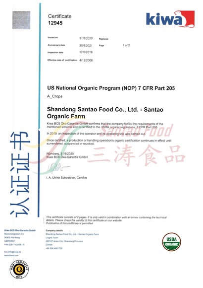 基地種植有機(jī)認(rèn)證證書