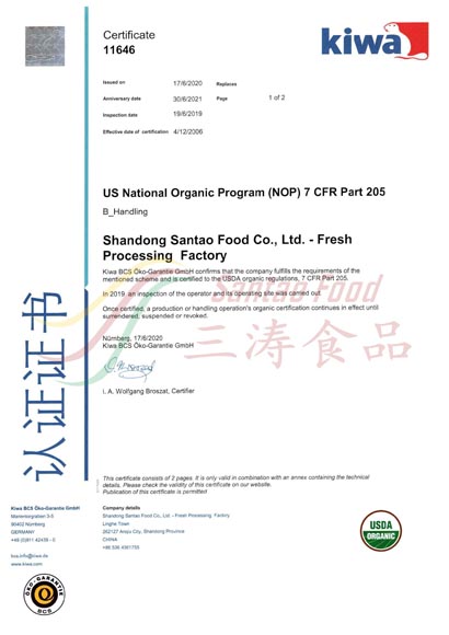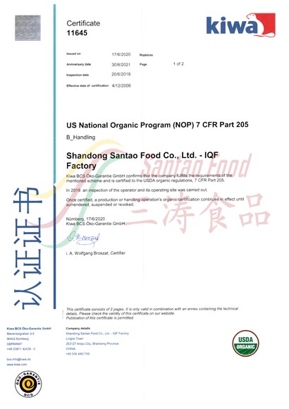 IQF加工廠有機(jī)認(rèn)證